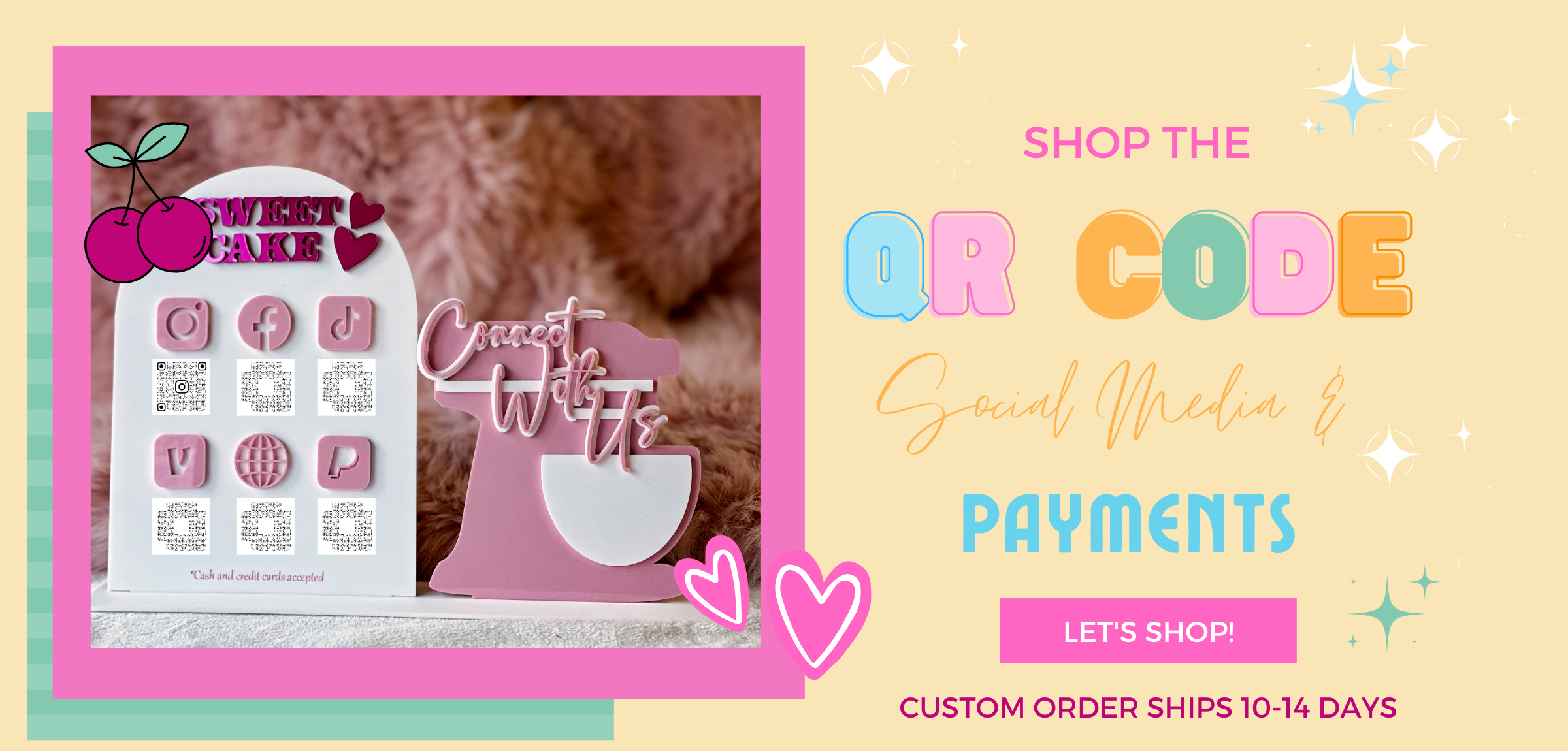 Custom QR Code Social Media Sign, Pop Up Sign, Let's Connect, Follow Us, Instagram, Business Sign, Market Sign, Payment Sign, Mini QR Sign